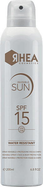 Rhea InvisibleSun SPF 15 je neviditelný voděodolný sluneční sprej na obličej a tělo s lehkou texturou. Chrání pokožku před UVA, UVB a IR zářením, podporuje rovnoměrné opálení, zklidňuje pokožku a nezanechává mastný film.